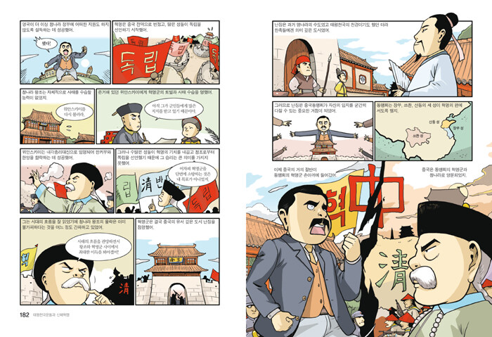 제대로 된 만화 세계대역사 시리즈 21권 태평천국운동과 신해혁명편. 중국은 산업혁명을 통해 엄청난 부와 군사력, 거기에 침략 야욕까지 덧붙은 서구 세력을 감지하지 못했다. 전 세계는 점점 서양 문명을 표준으로 삼게 되었고, 중국은 중화주의에서 한 계단 내려와 이를 받아들여야 했다. 청나라가 영국에게 치욕적인 패배를 당한 아편전쟁은 중국의 이러한 위치를 적나라하게 드러내주었다. 중국은 세계 역사에서 살아남아야 한다는 더 큰 절체절명의 위기에서 벗어나야 하는 상황이었기에 수많은 지식인들이 변화의 흐름을 주도하게 되었다.