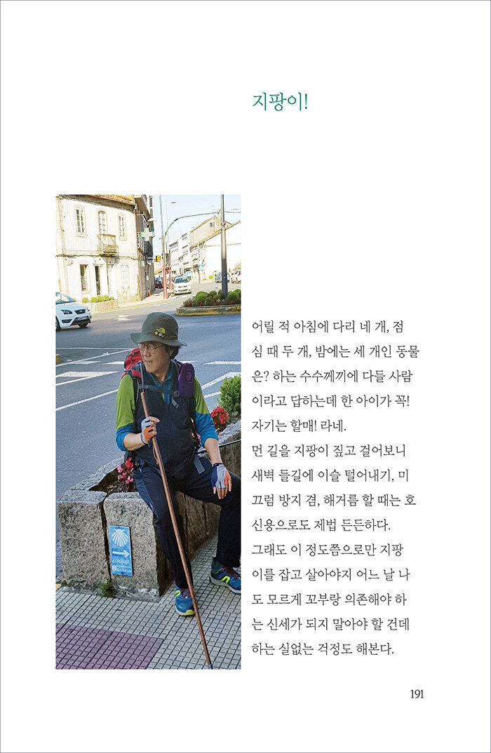 종착지 115Km 정도를 앞둔 사리아(Sarria) 지방을 지나자 사리아에서 출발하는 새로운 길손들이 갑자기 늘어나는 것 같다. 대충 보면 알 수 있다. 얼굴이나 복장 때깔부터 다르다. 우선 걷는 발걸음이 사뿐하다. 무슨 말인지 알 수는 없지만, 많이 떠든다. 거기에 비해 프랑스 생장(St-Jean)에서 먼 길 걸어온 순례자는 우선 말이 없다