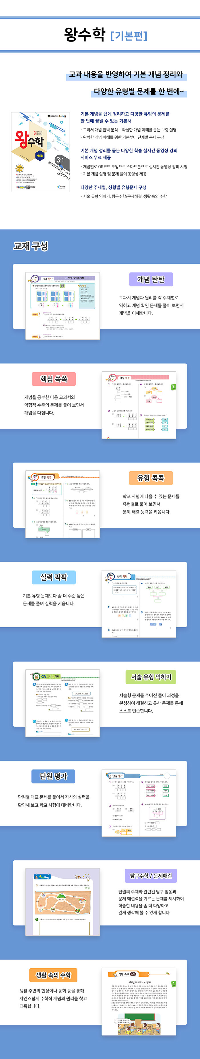 원리를 통하여 학습 내용을 익히고 반복 학습을 연습하여 기초를 다지는 교재다. 전 학년이나 전 단원에서 배운 내용 중 본 단원과 관련된 내용을 확인할 수 있으며, 교과서의 주요 내용을 익히고 반복연습하게 하여 실력을 향상시킬 수 있다. 본 단원의 학습 내용을 종합적으로 평가하여 자신의 실력을 확인할 수 있다. 또한 각 단계의 능력을 종합적으로 평가하여 다음 단계로 넘어갈 수 있는 진단평가가 구성되어 있다.